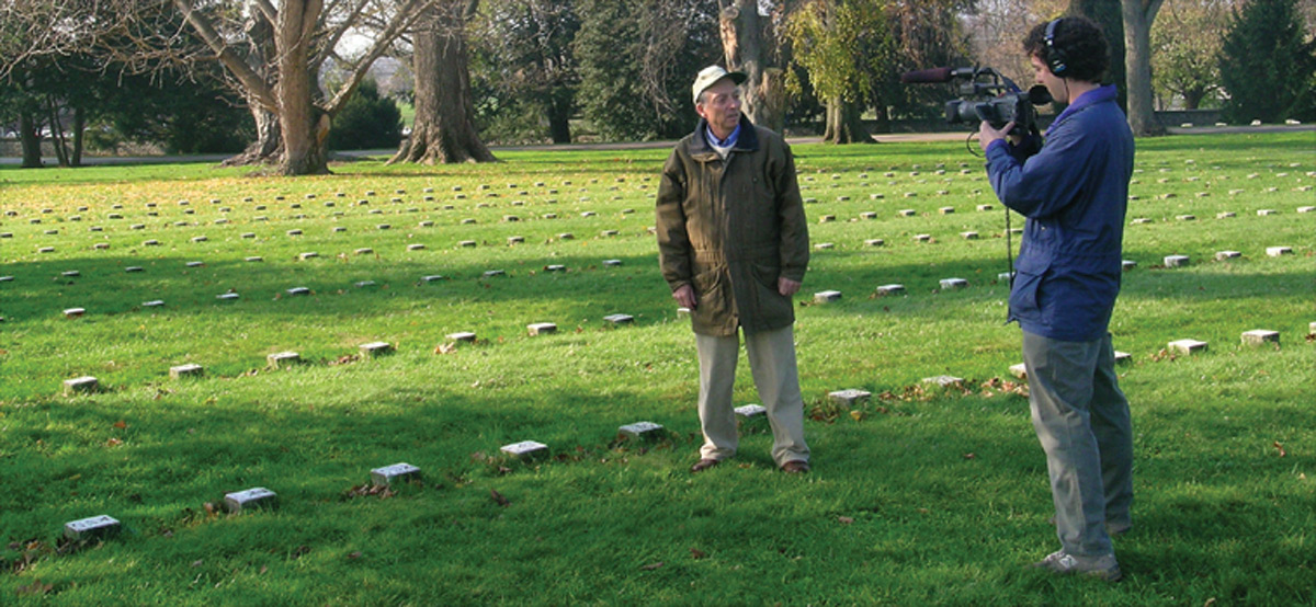 Filmmaker Jake Boritt shoots footage of his father historianGabor Boritt in the Gettysburg National Cemetery, site of Abraham Lincoln's Gettysburg Address.