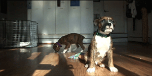 | These two boxer puppies, brother and sister, were born October 1 and came to the Gettysburg farm in mid November. |